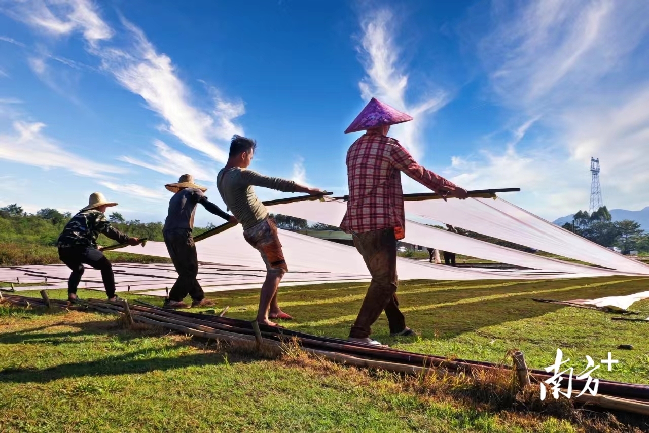 据悉,香云纱染整技艺2008年入选国家级非物质文化遗产名录,也是国家地理标志产品。2024年,阳春的香云纱晒莨场生产了五六十万米长度的香云纱。目前,合水镇香云纱年产量约100万米,主要供给杭州、广州、深圳等地制成成品,再销往全球各地。