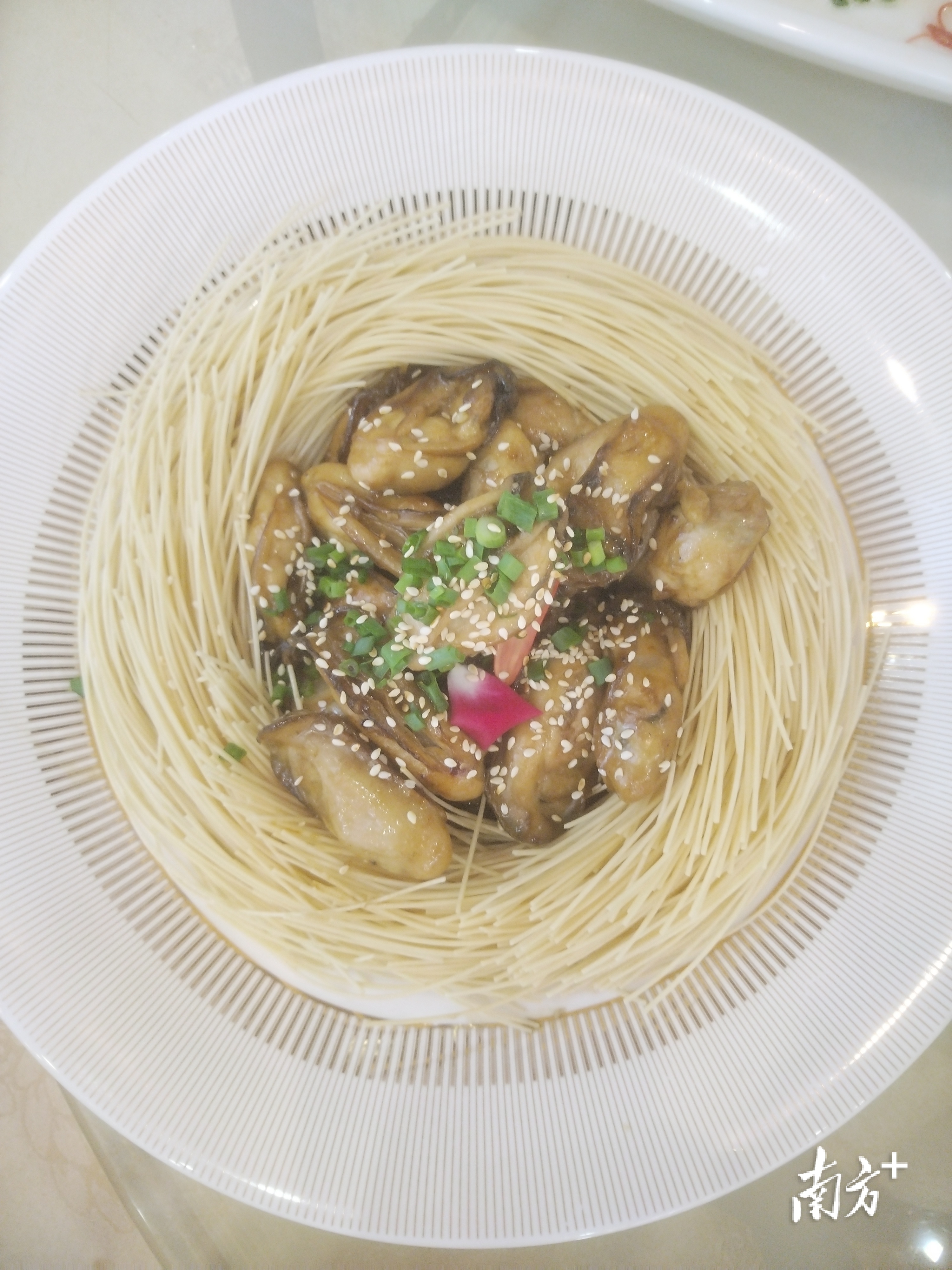 阳西程村蚝是获得国家地理标志的著名食材,肉质鲜美,营养丰富。用干煎的烹调方法,高温快煮,锁住鲜蚝水分,形成金黄酥脆的外壳,既保留蚝原有的肥美味道,又使口感更紧实弹牙,是色香味形俱全的最佳烹制方法。