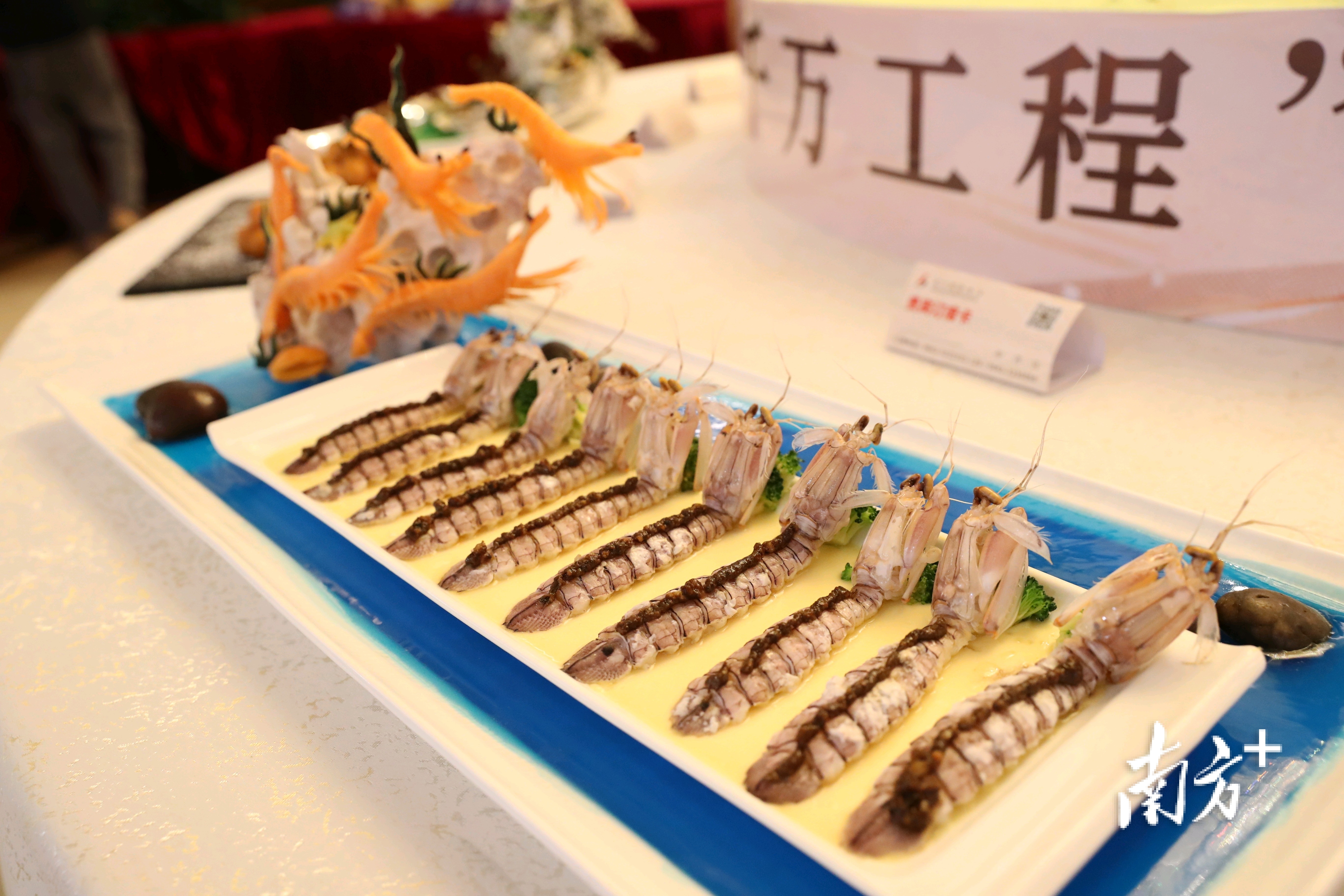 现长江国际酒店厨师将虾婆去壳,拌上独家研制的春砂仁酱,制作成为一道极具阳江特色的山海味道兼备,消食健胃、食药同源的创新特色海鲜菜。