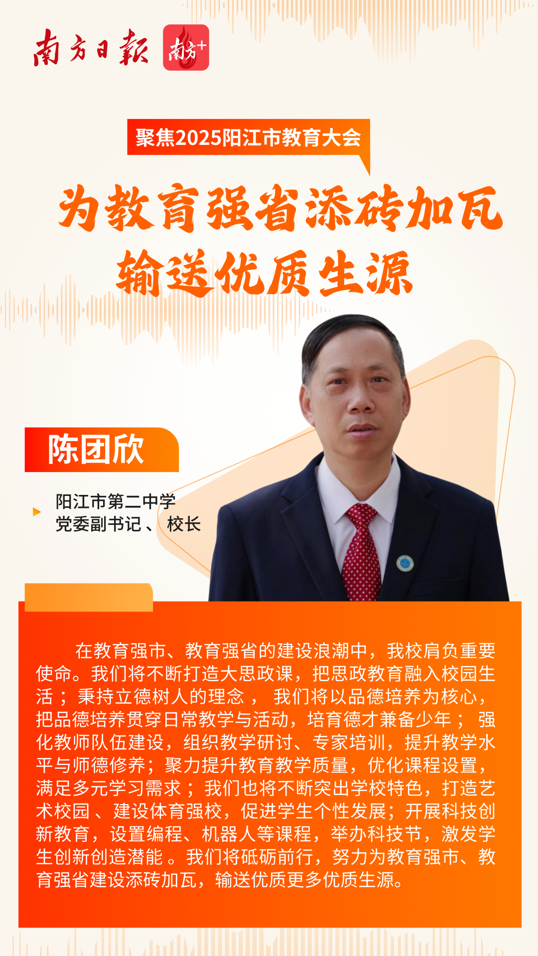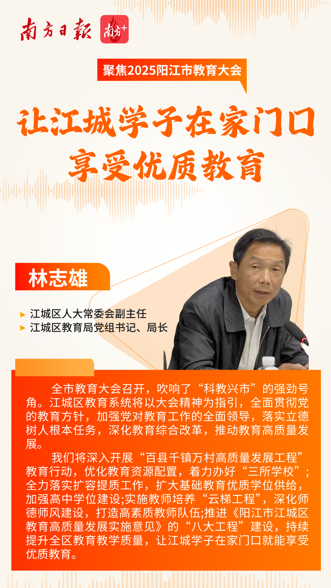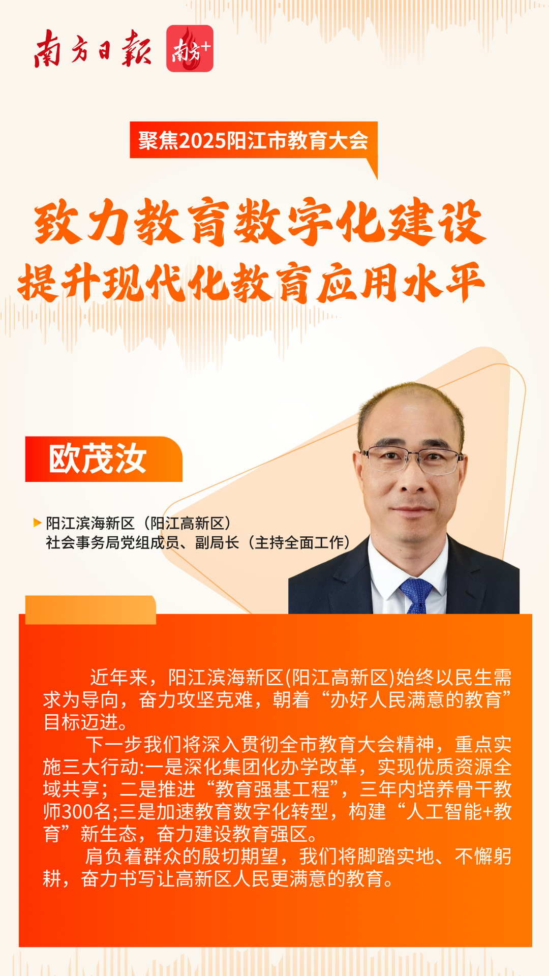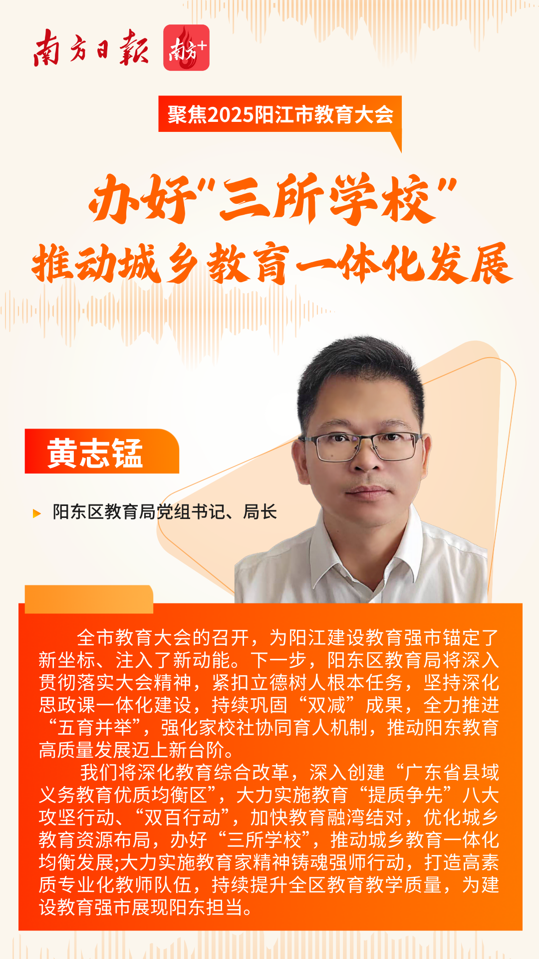 锚定建设教育强市目标,阳江教育系统将以“闯”的精神破局,以“创”的劲头突围,以“干”的作风攻坚,厚植人民幸福之本,以教育之强夯实阳江发展之基!