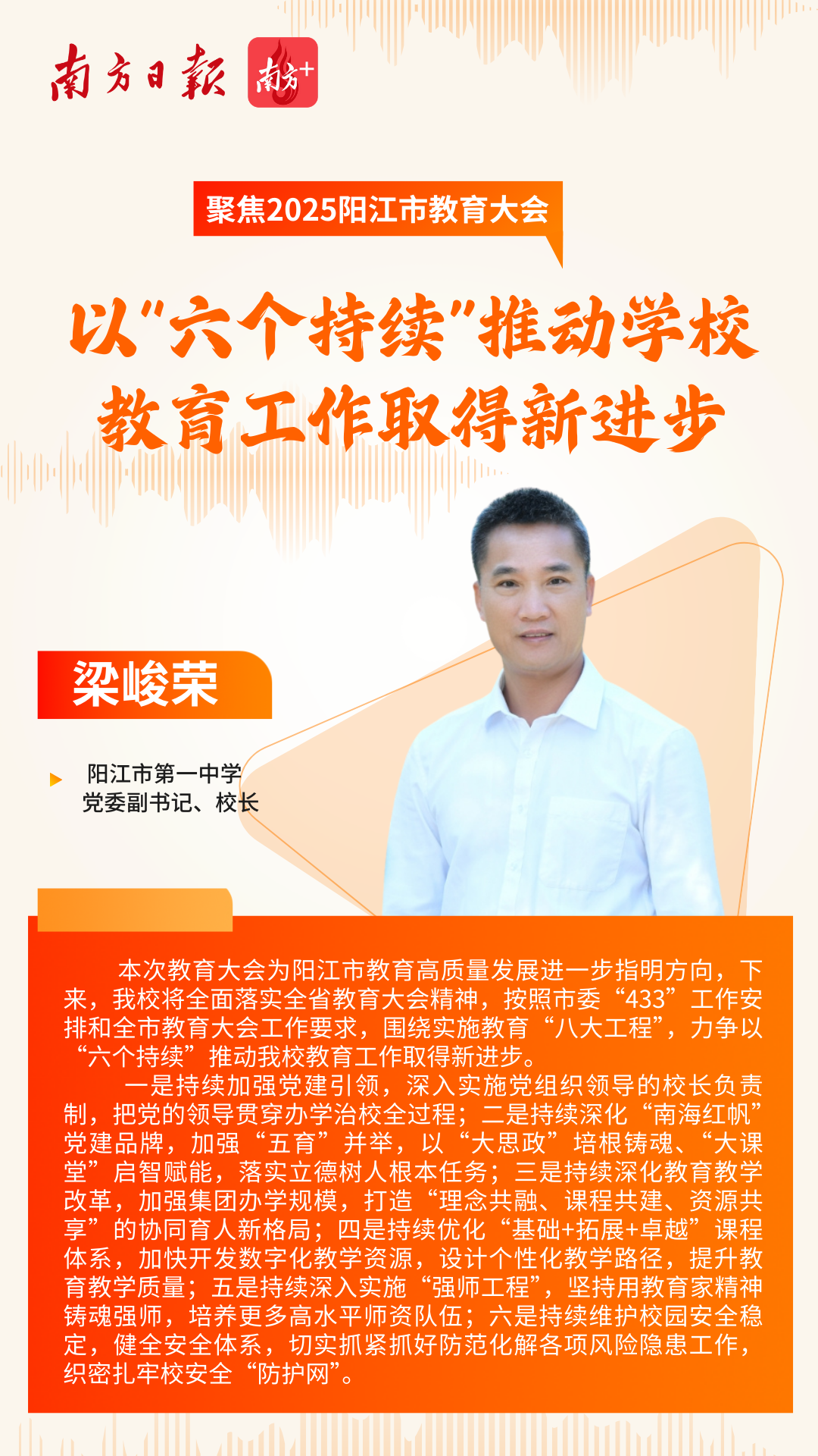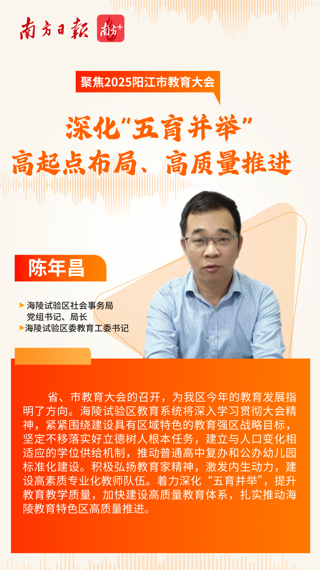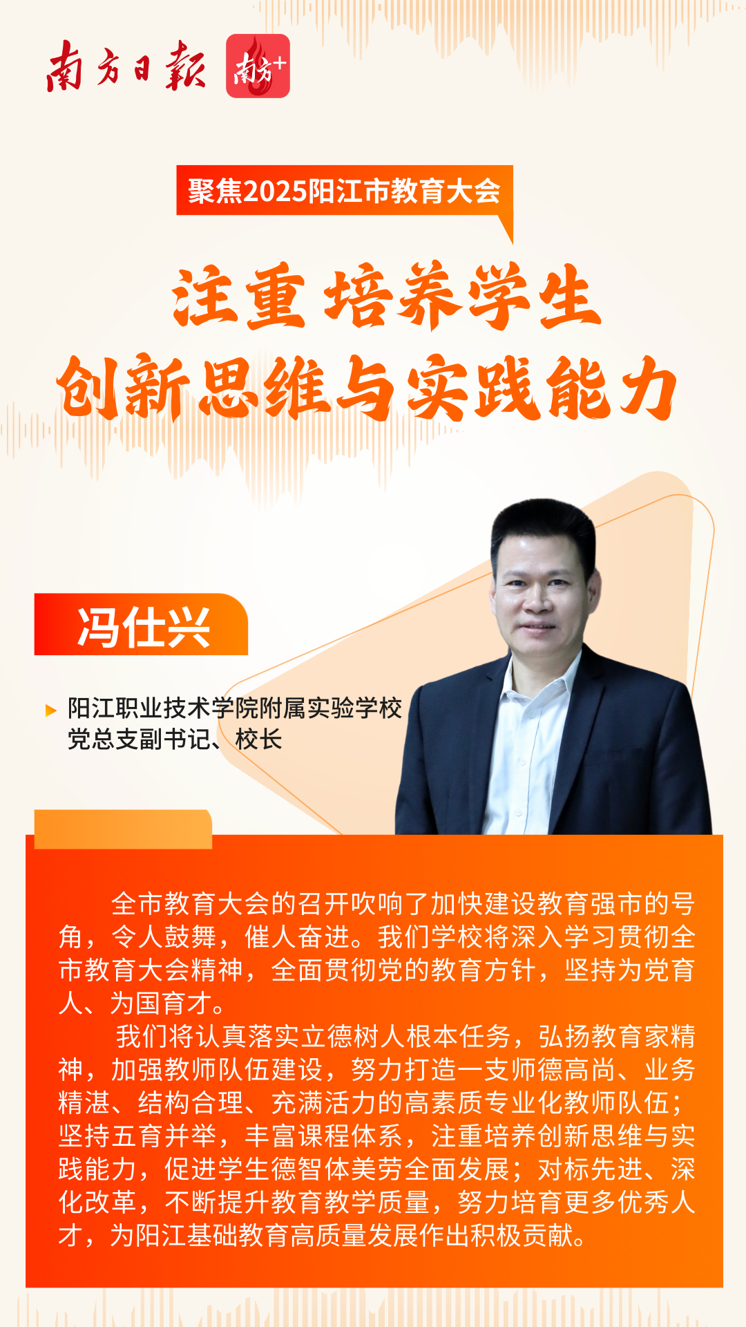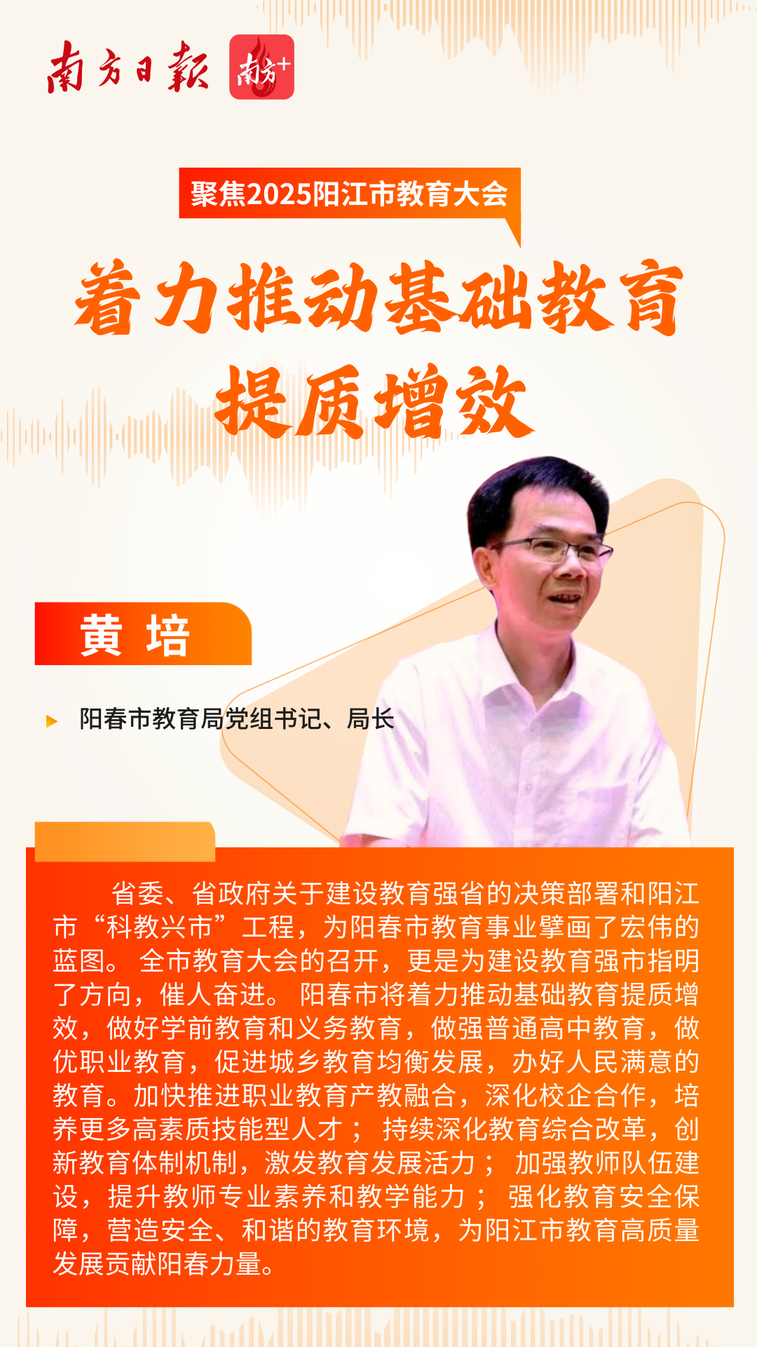 锚定建设教育强市目标,阳江教育系统将以“闯”的精神破局,以“创”的劲头突围,以“干”的作风攻坚,厚植人民幸福之本,以教育之强夯实阳江发展之基!