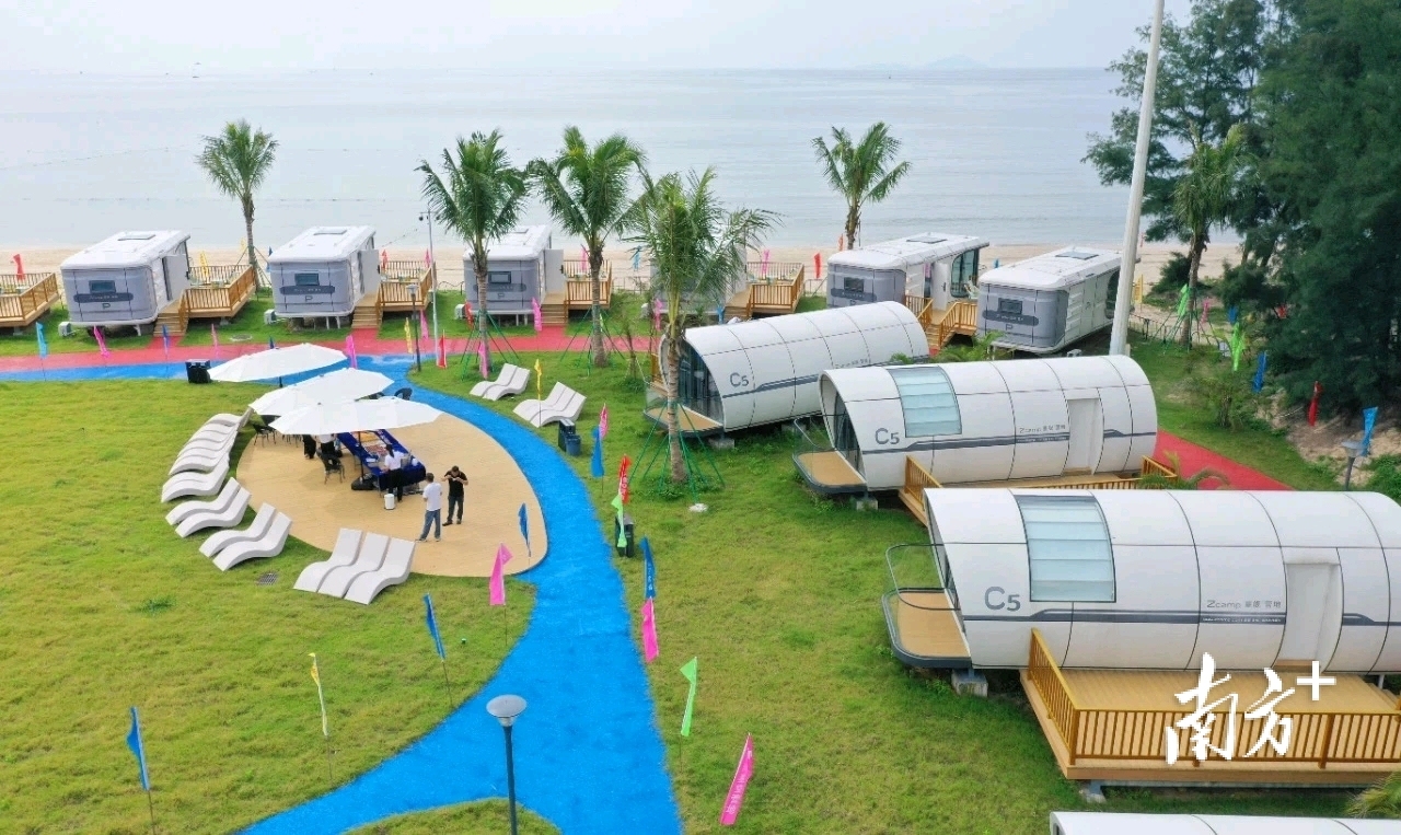 “珍珠湾星空营地,坐落在宁静的珍珠湾,面朝大海,背靠青山,配备20个智能星空舱,其中11间提供180°的海景视野。拥有4800平方米的户外拓展空间,可举办团建活动、旅拍、篝火晚会等,满足不同游客的需求。此外,营地毗邻2.8公里长的天然海滨浴场,可以在这里享受阳光沙滩,还能深入了解当地海洋文化和民俗。”广东金诚文化旅游投资有限公司副经理陈振伟说。