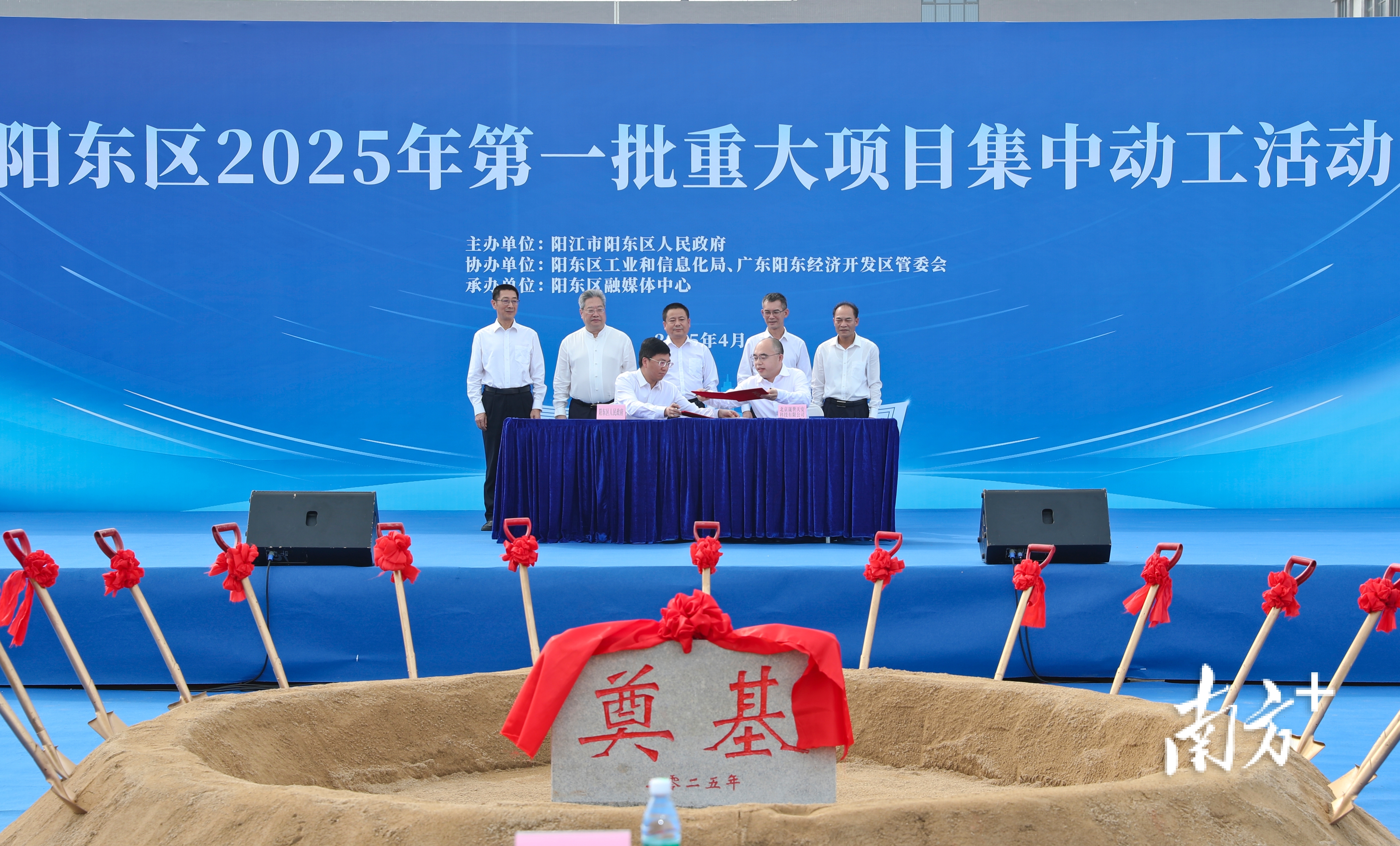 4月9日,阳江市阳东区“聚力百千万,推动区域经济高质量发展”2025年第一批重大项目集中动工活动在阳东工业园举行。阳东区四套班子领导成员,珠海市—阳江市产业转移合作园区管委会相关负责同志,各镇党委、政府主要负责同志,区直有关单位主要负责同志以及签约、动工、投产企业的嘉宾代表参加活动。