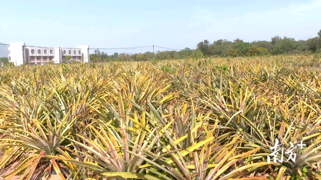 新盐村富悦来生态农场负责人梁荣华介绍,今年凤梨有点缺水,长势和去年有点差别,上市的时间稍微会推迟一点,大概要5月中下旬。现在主要是进行除草工作。今年首批凤梨大概是30万斤。