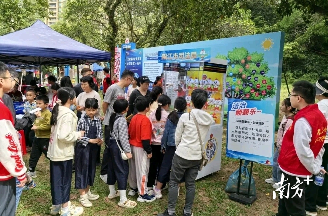4月13日,2025年阳江市“4·15”全民国家安全教育日活动在市区金山植物公园举行。活动以“科技赋能安全·创新守护未来”为主题,设有1个任务打卡区和12个展示区。市司法局在“法治阳江普法宣传区”通过法治翻翻乐、法治娃娃机、法治彩绘等互动体验,将“普法+非遗”融入宣传国家安全法律法规知识,提高公民国家安全法治意识。