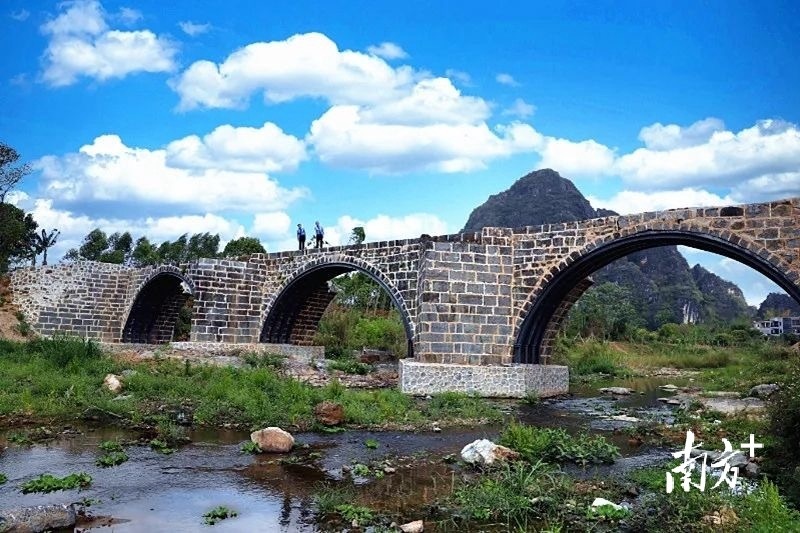 蓝天白云下,那乌古桥横跨在那乌河上。桥下是涓涓细流,倒映着旁边耸立的高山,桥的两端是那星村的村庄。站在上面,和煦的春风徐来,仿佛看到了“小桥流水人家”的具象化。