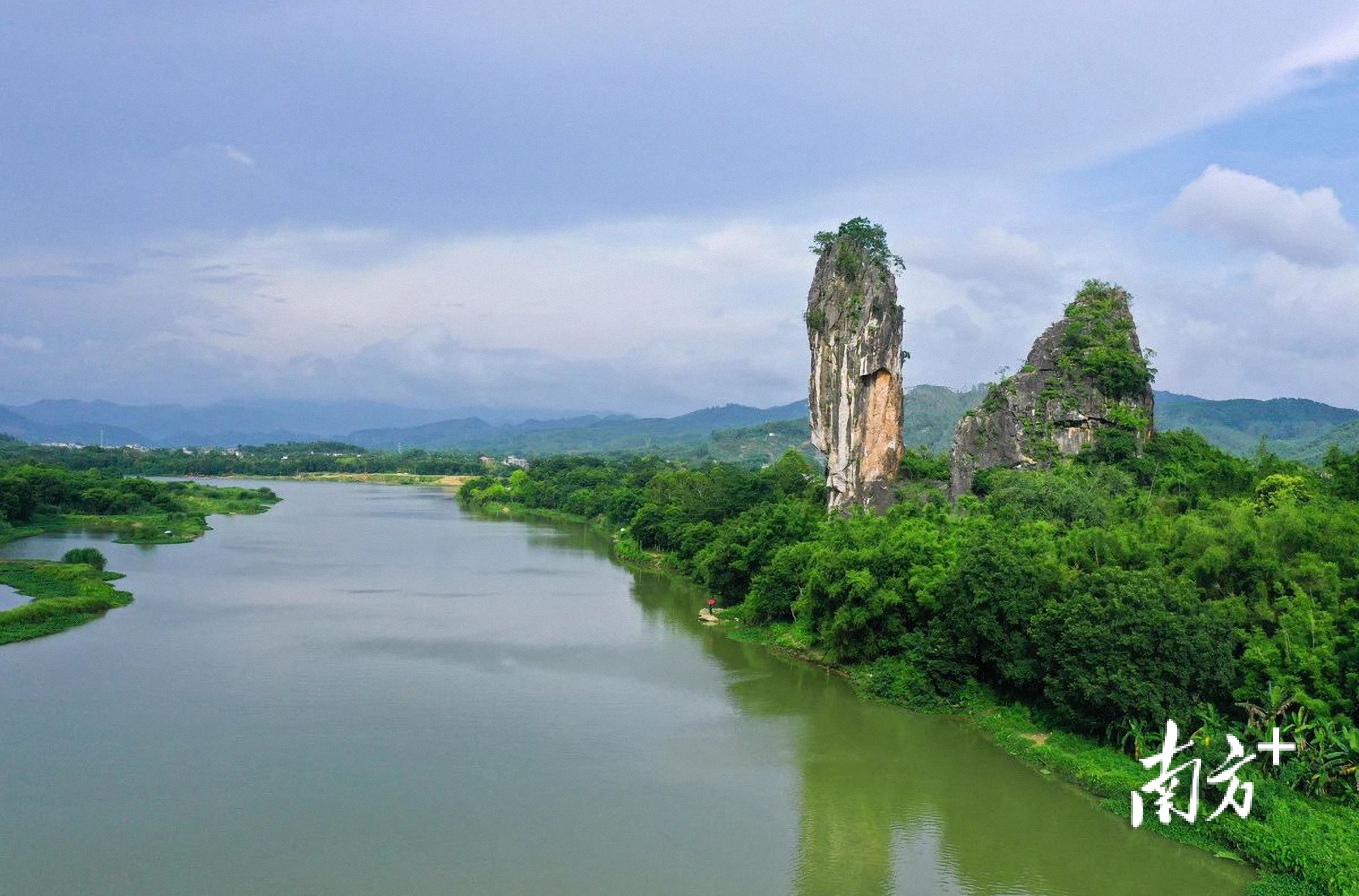毗邻漠阳江,峰峦呈喀斯特地貌,山水相依,河滩与葱郁树林相映成趣,似桂林山水般灵秀。