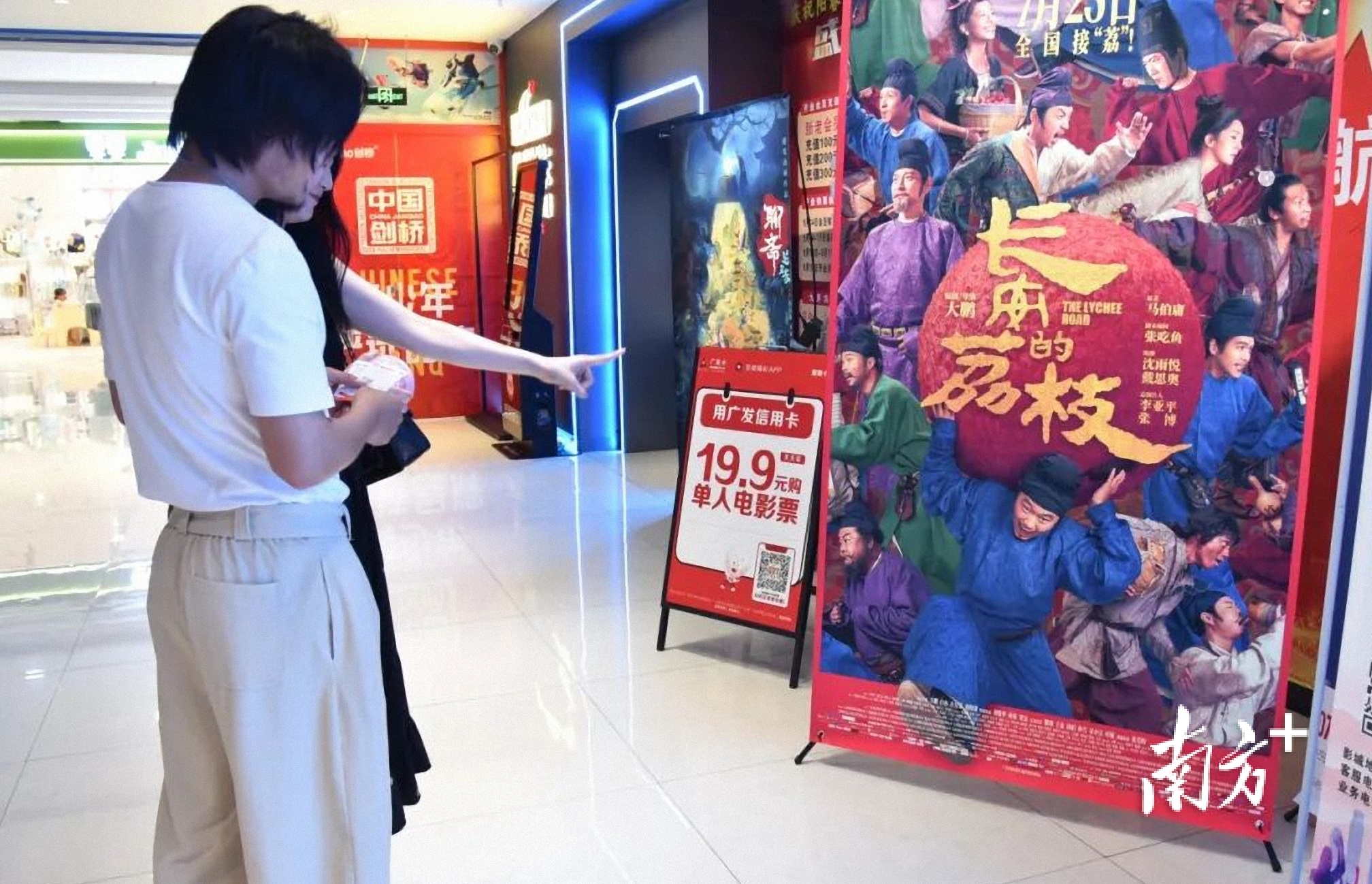上映前,电影《长安的荔枝》在阳春市区各影院开启了“超前点映”。7月14日,记者走访阳春市区各影院看到,《长安的荔枝》的巨幅宣传海报占据“C位”,不少市民约上亲朋好友,手持影票早早等候入场。