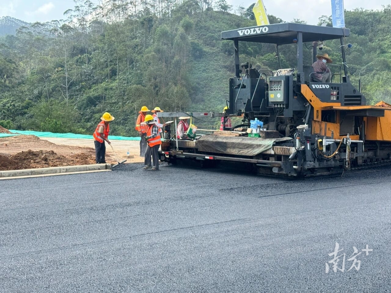 10月9日上午,广湛高铁阳春东站进站路施工现场机器轰鸣,摊铺机、压路机依次排开。随着一车车滚烫的沥青混合料卸下,该进站路全面铺设沥青的作业有序开展。