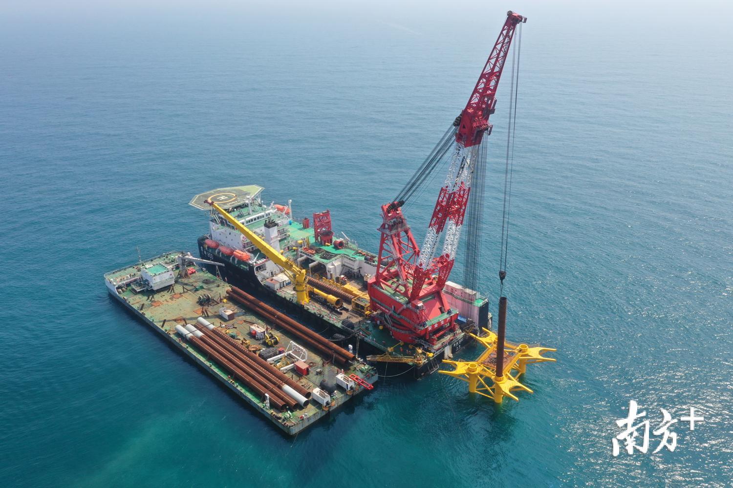 3月28 日,广东能源集团阳江沙扒海上风电项目正式在阳江海岸线外约20公里处进行工程桩打桩施工,标志着该项目海上主体工程建设正式启动。未来总装机容量达30万千万的海上风力发电机组将建在其上,为粤港澳大湾区发展提供稳定的绿色能源支持。