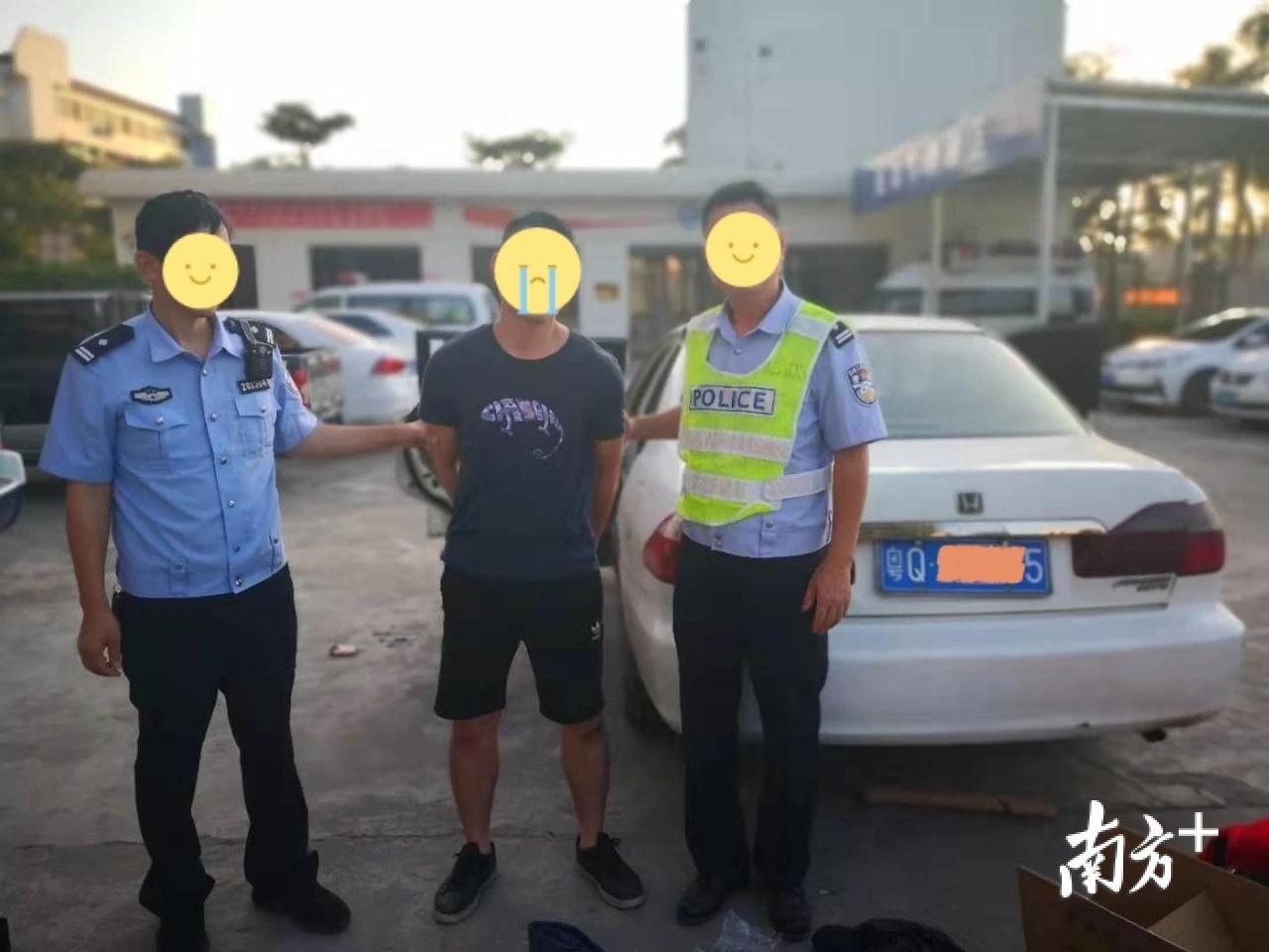 11月20日下午16时许,阳江市高新大队民警在雅白线中洲大道红绿灯路口处执勤时,一辆车牌号为粤Q****5白色广本小汽车引起了民警的注意。