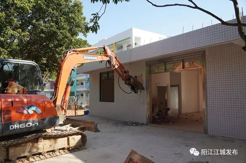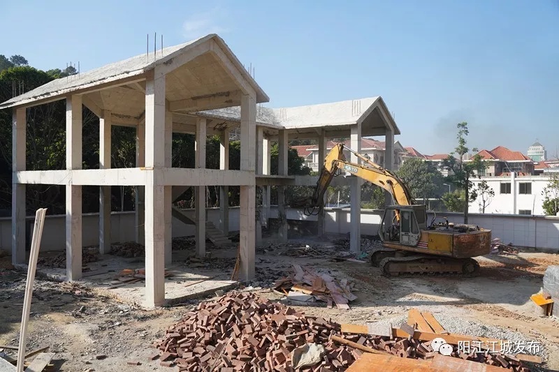 现场相关负责人介绍,前段时间,当事人未经批准擅自动工建设,执法人员多次到场巡查警告并发出《责令整改通知书》,要求其现场停止施工并自行拆除,该业主仍利用节假日等时机偷偷施工建设。当天上午,江城区开展联合执法行动,出动100多名执法人员和大型机械,依法对上述违法建筑进行强制拆除。并责令违法当事人进行土地平整,近期内恢复土地原状。