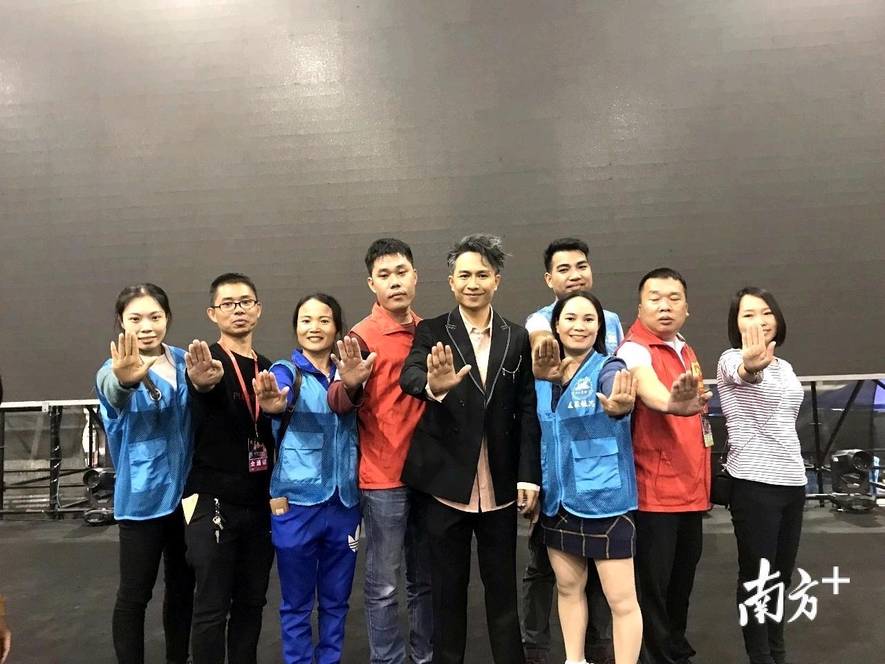 演唱会结束后,禁毒形象大使欢子与前来参加禁毒宣传工作的志愿者加油鼓励。