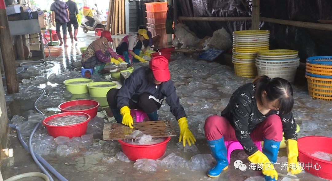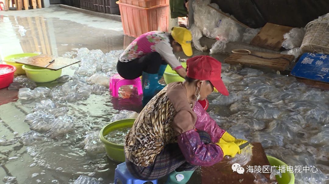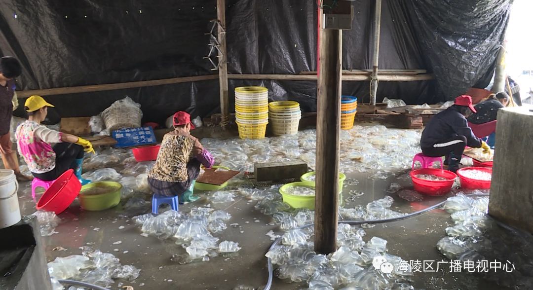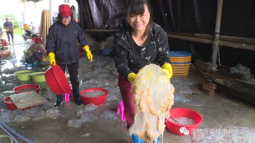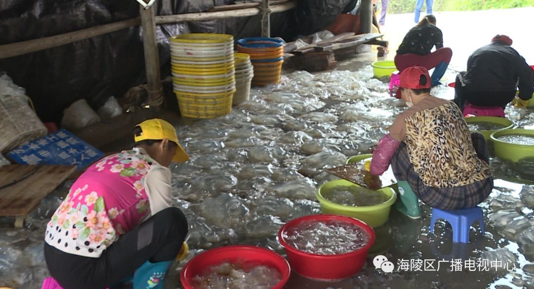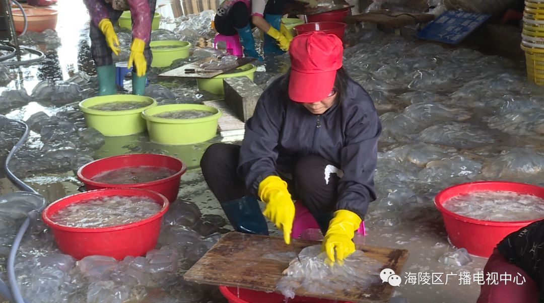 据加工厂的工人兰姨介绍,每年的二、三月是海蜇的汛期,加上今年春季的气温比较高,大量海蜇飘游到浅海,渔民抓住有利时机,纷纷出海捕捉海蜇,他们工厂每天能收购和加工海蜇几千只。