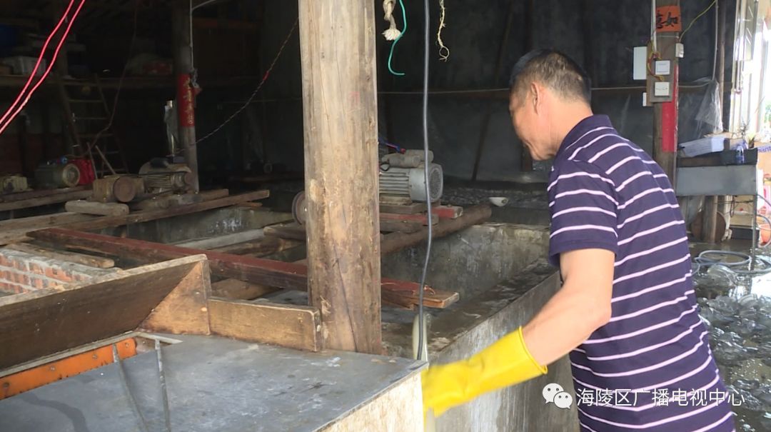 3月23日上午,记者来到位于瓦晒村的一家海蜇加工厂,只见这里堆满了海蜇,工人们正忙着对海蜇进行加工,她们先把海蜇切块,再放到清洗池里用机器进行清洗,清理干净完后再放上盐巴,整个工序就完成了。