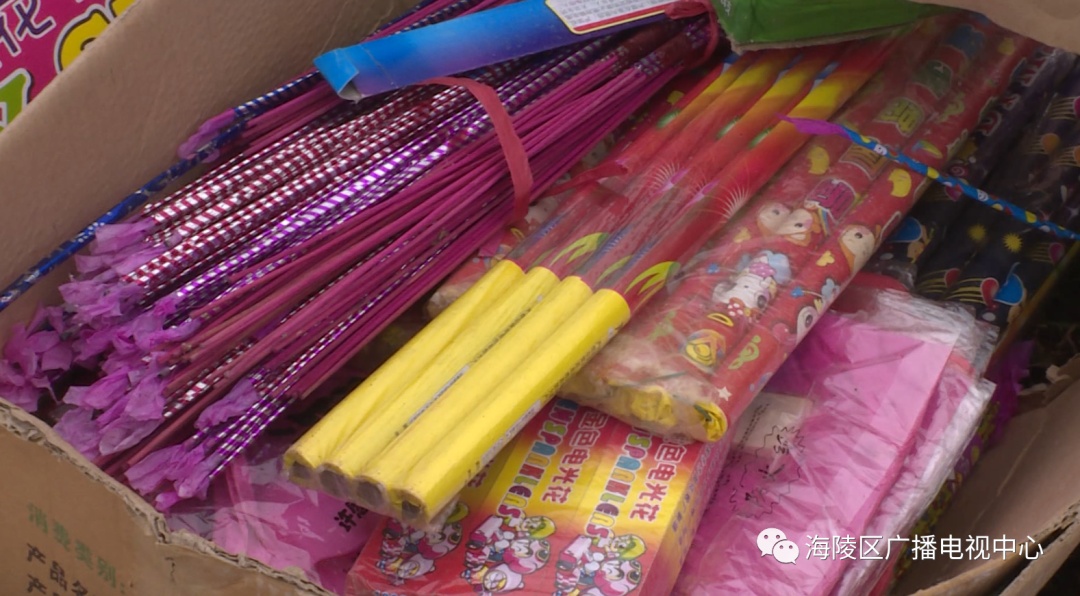 据了解,为加强对烟花、炮竹的管理,严厉打击违法销售和燃放烟花、炮竹、孔明灯的行为。去年以来,区安监、公安、综合执法等部门加大“打非治违”的力度,多次开展整治行动,对岛内违法销售、燃放烟花、炮竹和孔明灯的行为进行查处,查获了违禁烟花、炮竹和孔明灯一批。这批烟花、炮竹都是“三无产品”和伪劣产品,存在很大安全隐患,为此,海陵区执法部门决定对这批烟花、炮竹进行销毁。