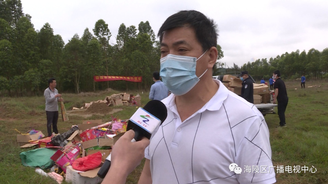区安监局主任科员 张华雄:我们主要是根据区委、区管委的主要部署,对我们区非法销售烟花、炮竹进行打击行动。这次我们联合公安、执法等部门开展联合执法,对收缴的烟花、炮竹,今天我们在现场进行销毁,大概是5000公斤左右。下一步我们将加大执法力度,对非法销售烟花、炮竹加大打击力度,严禁在全区放烟花、炮竹。