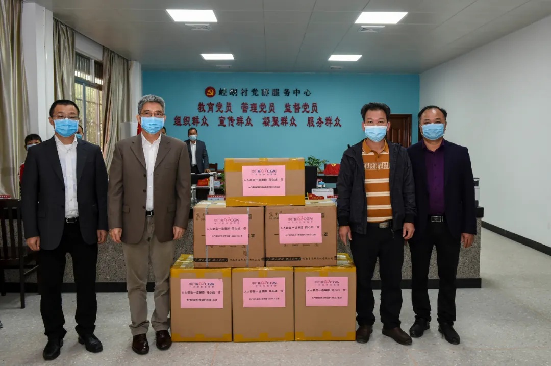 (贺禹代表中广核向崆峒村委会捐献防疫物资)