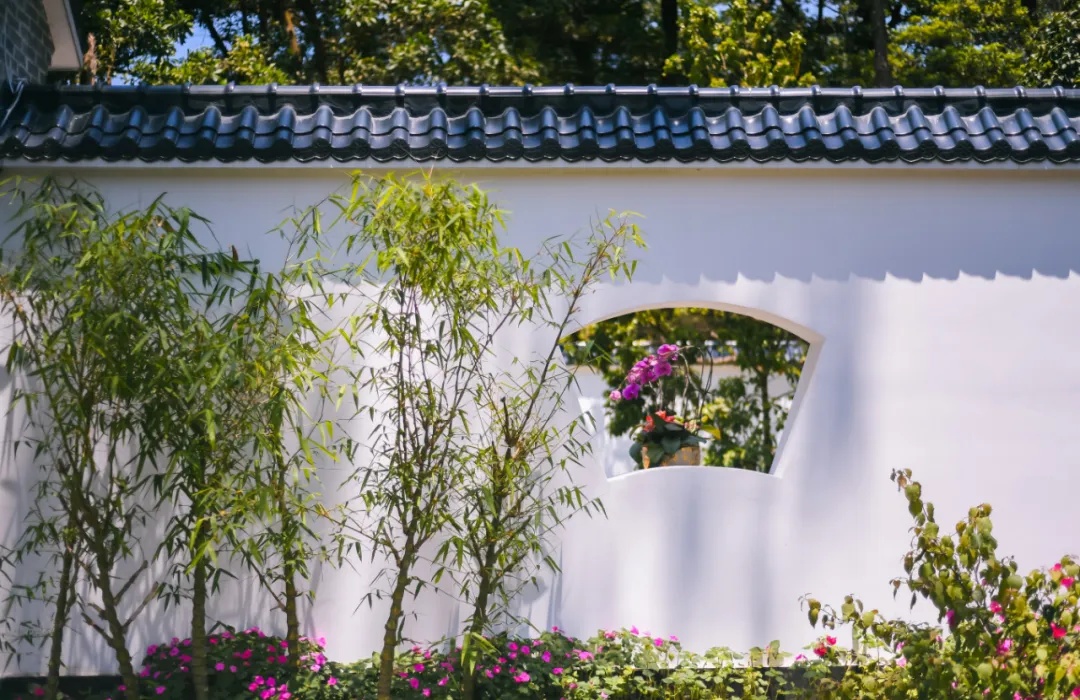 白墙配以镂空花窗尤引遐思
