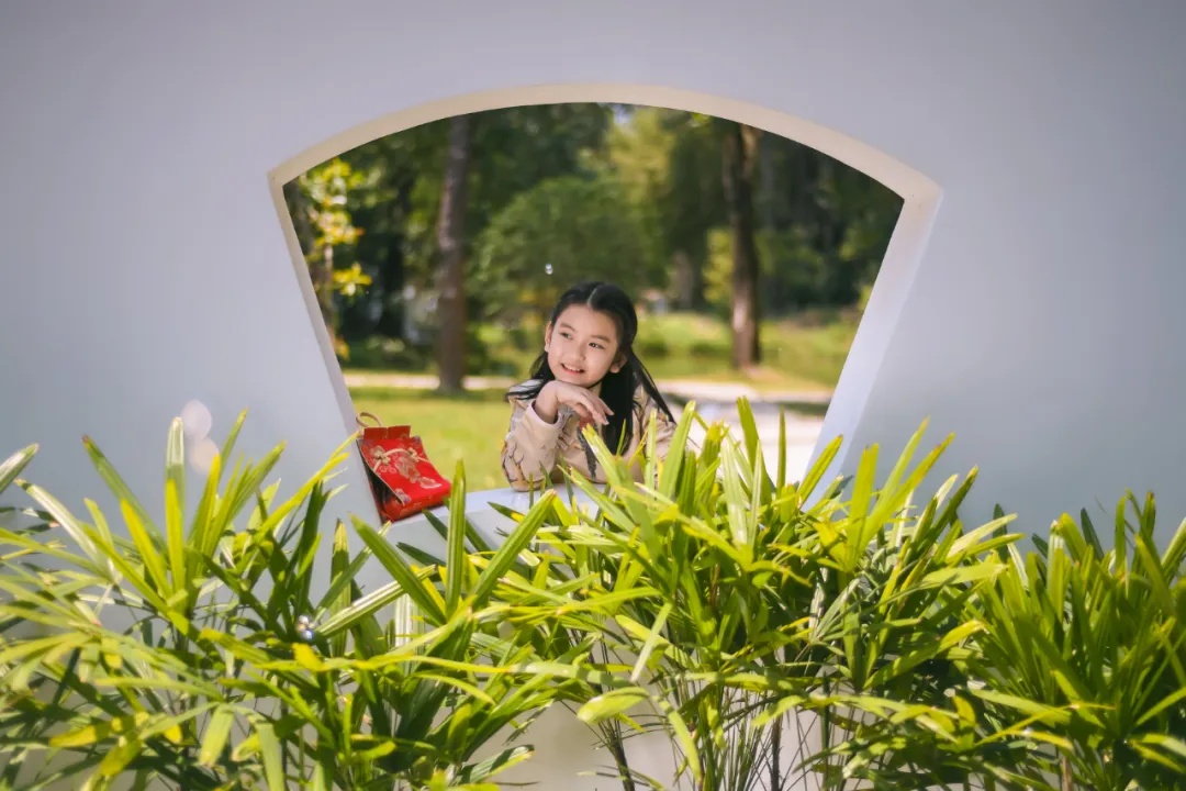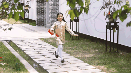 不经意间,有小女孩蹦蹦跳跳跑过