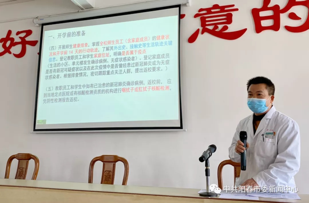 阳春市合水中心卫生院全面开启护航复学模式,对合水中学进行专人对接,指导防控及各办公场所物表、地面等地的消毒工作。