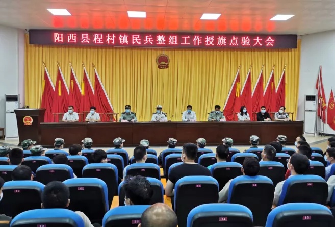 阳西县程村镇召开民兵整组工作授旗点验大会。