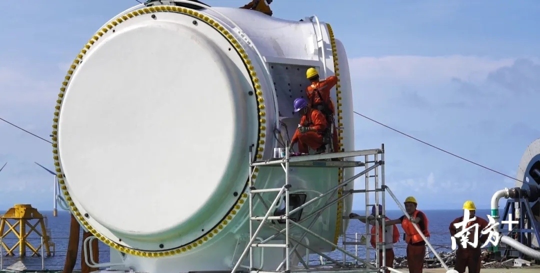 当前正处于海上施工的窗口期,只要海况适宜,工人们将分两班24小时作业。“我们现在目前做的是一期项目17台风机的安装,已经完成了7台,有三台已经并网(发电),在7月底之前把剩余的10台风机全部安装完成,另外二期、三期、四期、五期在施工准备过程中,会陆陆续续地逐步开工。”朱国虎表示,接下来会充分利用天时地利人和的优势,继续严守质量关口,抢抓施工进度,力争把项目打造成为南海的标志性项目。
