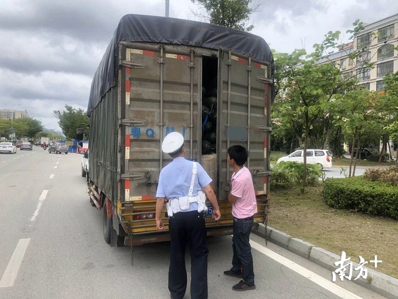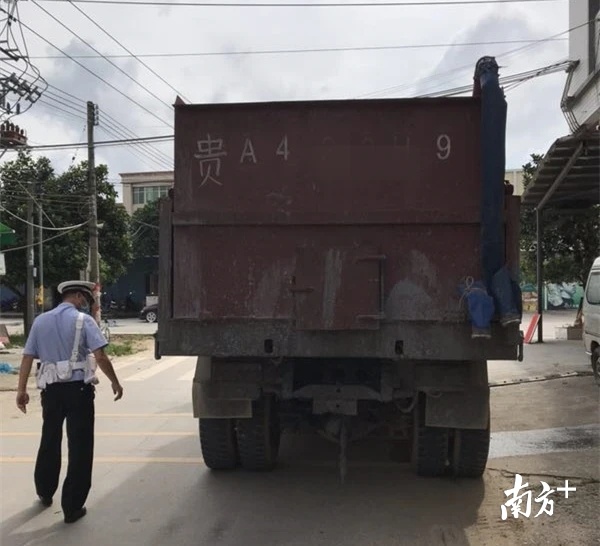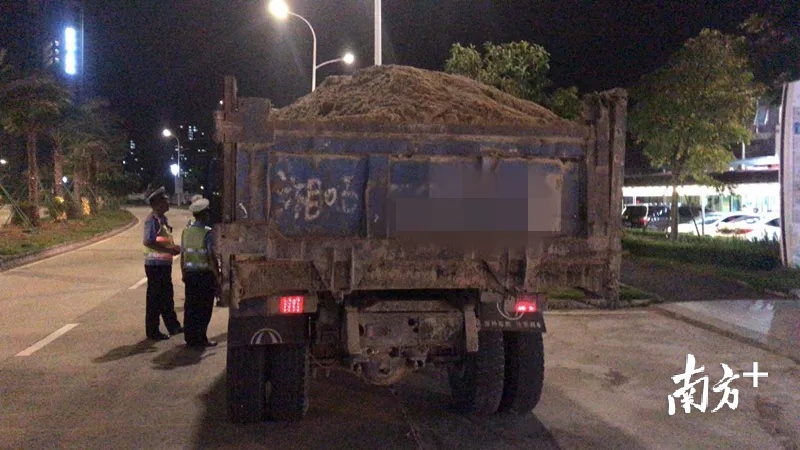 阳江公安交警对途径的工程运输车做到“逢车必查”。