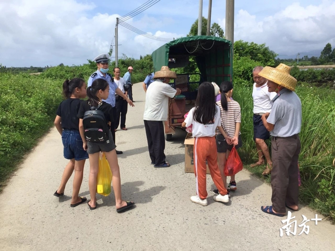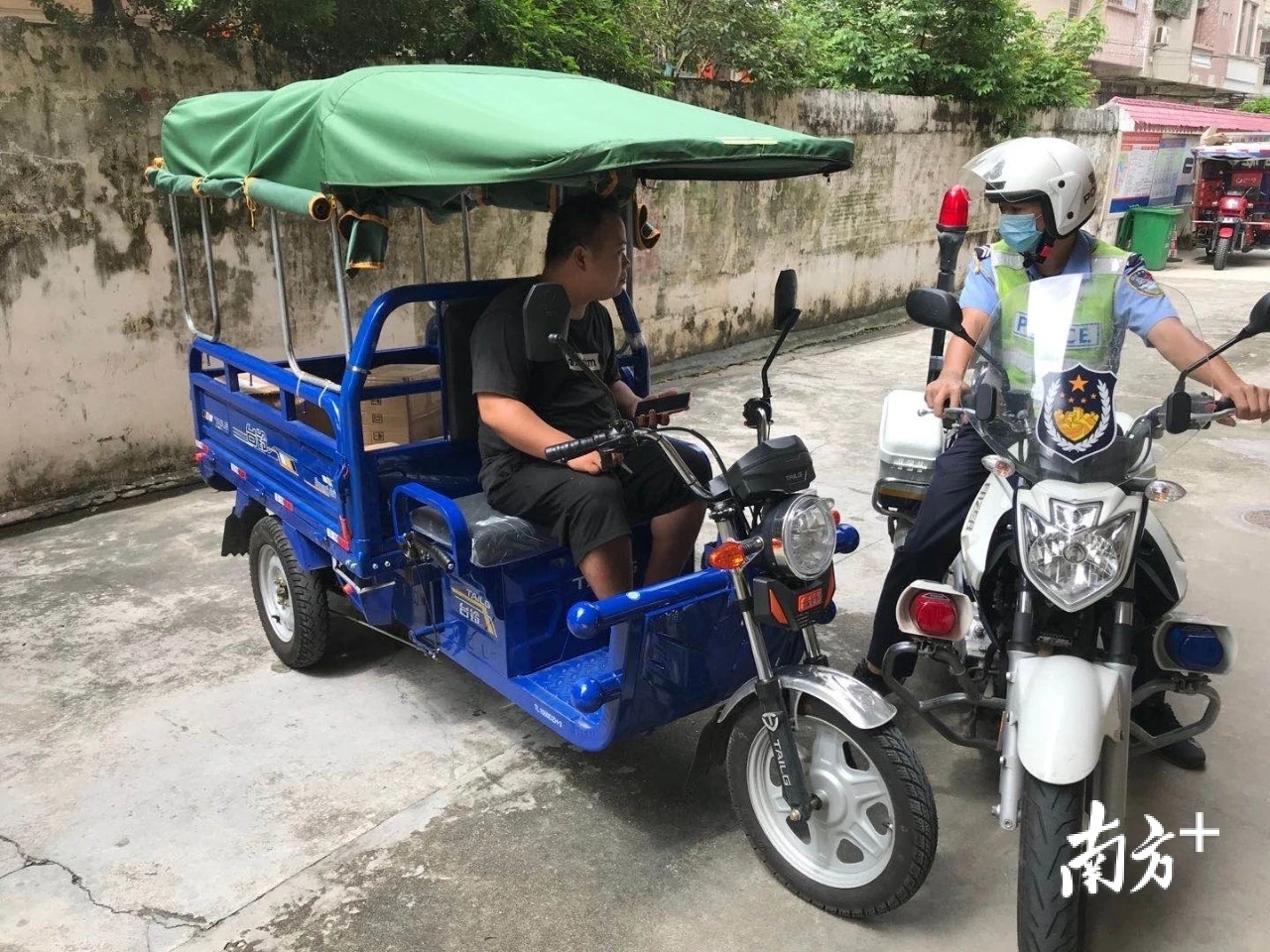 阳西交警大队在乡村主要出入口严查三轮摩托车交通违法行为。