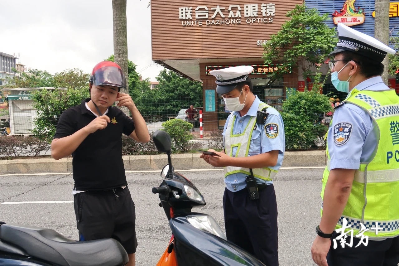 10时30分左右,一辆“邮政快递”车辆经过豪贤路口时,执勤人员发现该车驾驶员没有按规定佩戴安全头盔,遂依法对该驾驶人没有按规定戴安全头盔违法行为进行处罚。