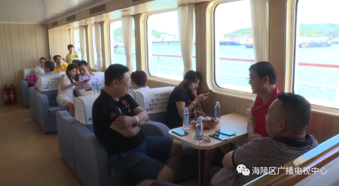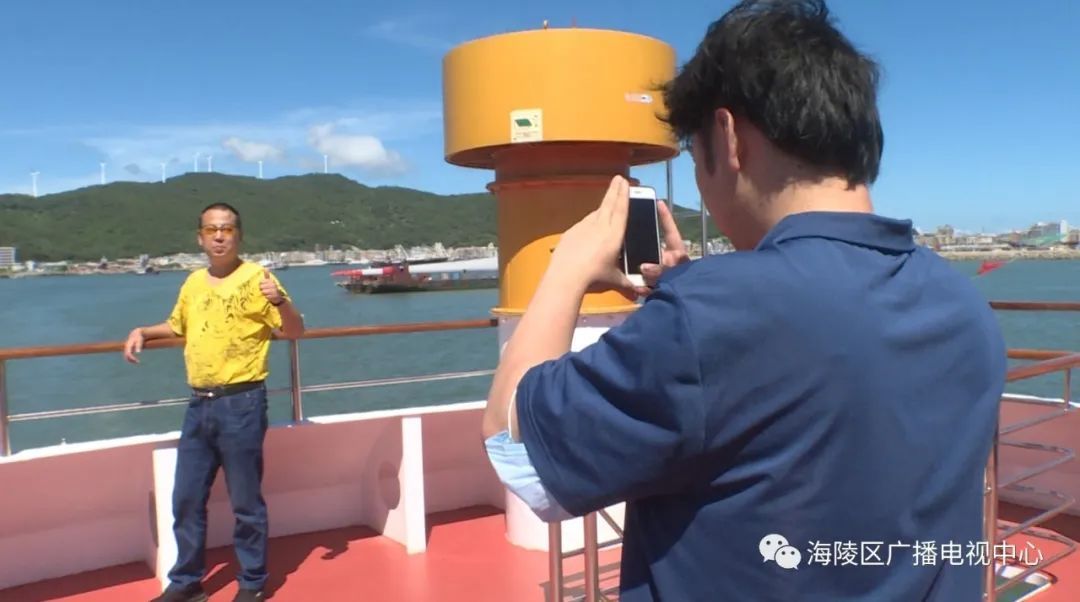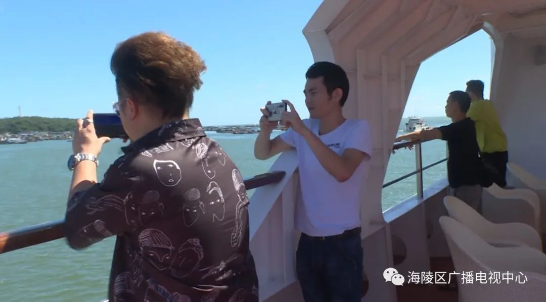他们从闸坡国家级中心渔港起航,途经马尾岛、北洛秘境、大角湾、南海放生台、十里银滩等多个景点;在2个多小时的航行中,邂逅海陵岛的阳光,欣赏海天一色的美景,不时还拿出手机和相机拍下这难忘的一刻。