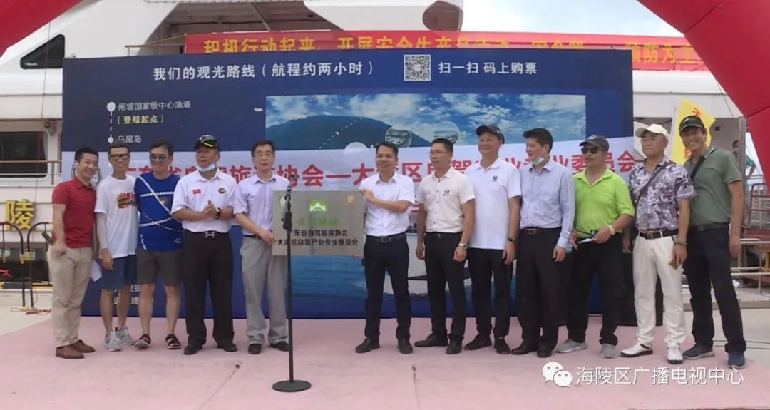 当天中午12点多,由120多辆车组成的车队驶进海陵岛,来到闸坡渔港天成游艇码头,举行简单而隆重的仪式后,乘豪华游船环岛游。