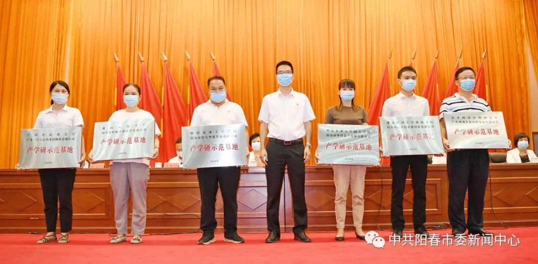 9、产学研示范基地:广东一片天医药集团制药有限公司、阳春市恒耐工业皮带有限公司、阳春市星宝坚果发展有限公司、阳春市华泽农业发展有限公司、阳春市春金色农业投资有限公司、广东澳盛农业科技发展有限公司。