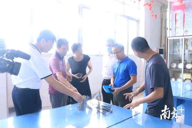 专家组在阳江职业技术学院风筝实训室实地了解风筝构造和制作过程。