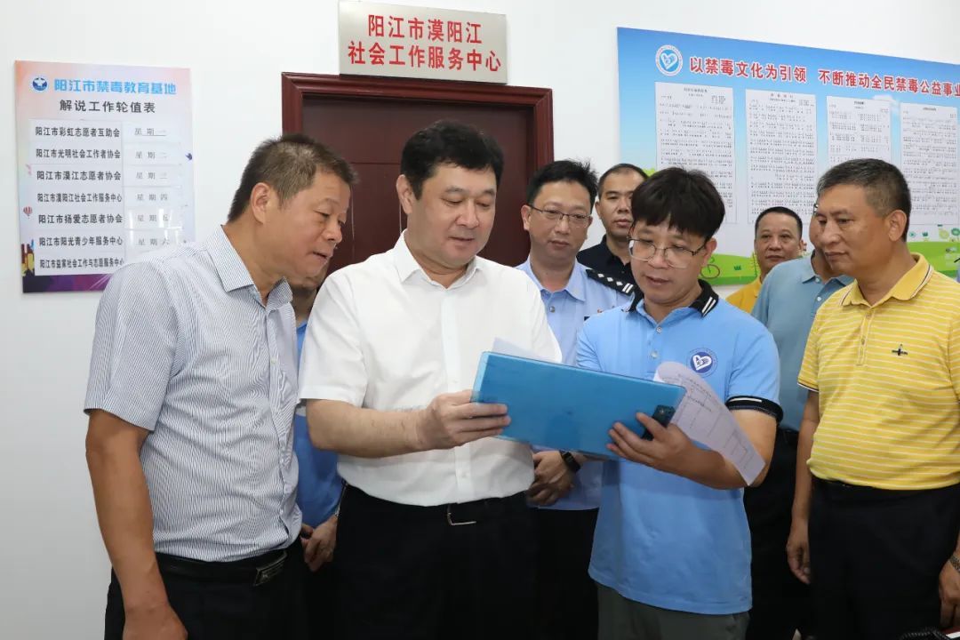 7月16日,省禁毒办常务副主任、省公安厅禁毒局局长刘国强率省禁毒办工作组到阳江调研指导禁毒工作,并召开座谈会,阳江市副市长、市禁毒委常务副主任、市公安局局长梁进海,市禁毒办、阳西县禁毒办相关同志陪同参加。