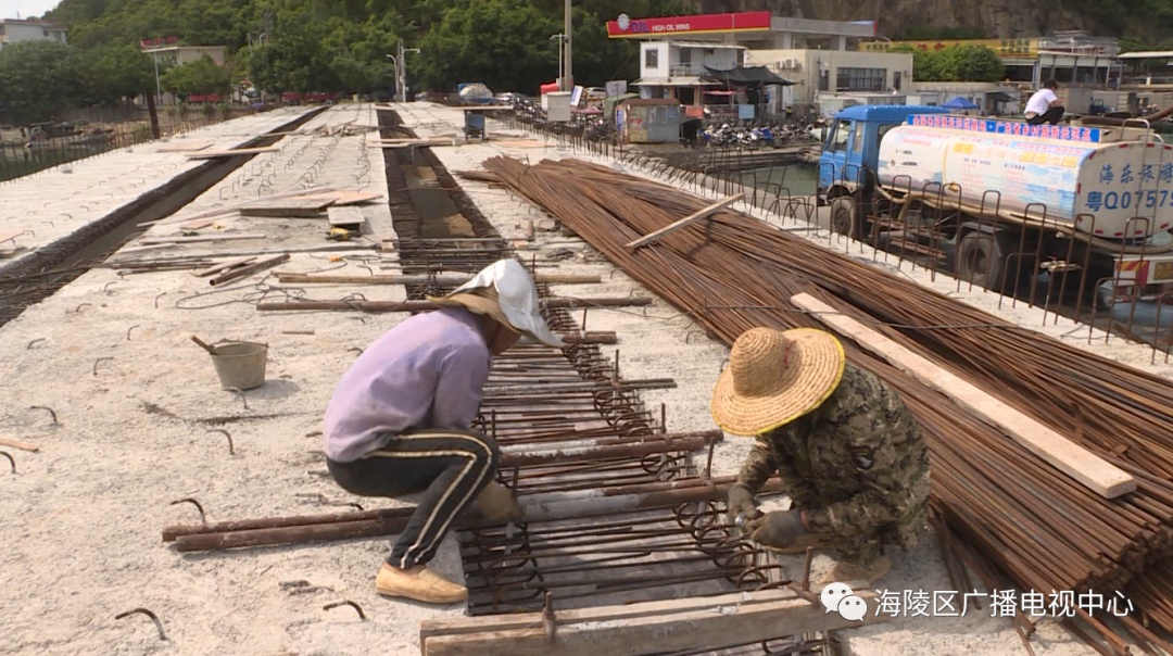 据现场施工负责人介绍,闸坡洲仔峡桥梁建设工程目前已完成工程的60%,主桥部分已进入桥面施工,做好桥面塞接缝后就可以进入面层施工,预计工程在8月中旬完工并通车。