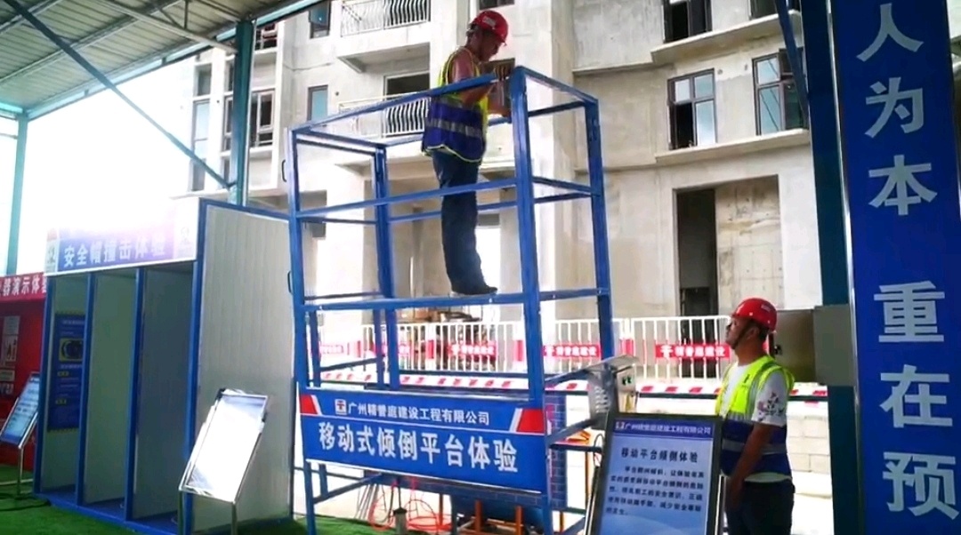 人体是导体,当人体上加有电压时,就会有电流通过人体,当加在人体的电压达到一定数值时,就会发生触电。“提前让工人们体验触电的感觉,他们在日后用电时便会更加小心。”在综合用电演示体验区,管理人员亲自上场体验触电,以身作则。见证过不安全,甚至体验过危险,“安全”二字,才更加珍贵。为了让工人们亲身体验坠落、倾倒、撞击等遭受危险的场景,提高安全意识,现场还设有安全带使用体验区、移动平台倾倒体验区、安全帽撞击体验区、灭火器演示体验区、VR体验区,真实模拟危险场景,充分展示碧桂园集团安全管理工作之完善。