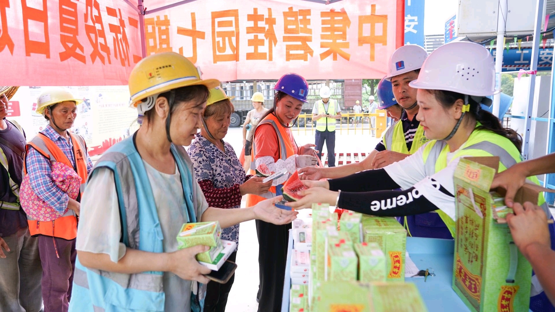 防疫消防安全等不同主题的演练培训、免费体检义诊活动、安全标兵评比活动、送清凉活动……夏日送的是“清凉”,收获的是暖心。安全生产是第一步,也是贯穿始终的原则,碧桂园集团对员工的安全健康加倍重视,加倍用心。专设民工技能培训学校,为每一批新上岗的工人进行安全施工和技能操作等相关培训;设置班前安全讲评台,安排安全员每天上午在台上讲解安全知识约半小时;各处设置小电视,定期组织工人观看安全宣传片,提高安全意识;每周进行安全巡检,每月进行全方位无死角的检查。除此之外,在出入口处的急救药品展示柜中,工人所需的药品应有尽有,“工人们对药品的需求基本上都是防暑降温方面,日后我们还要继续加大‘送清凉’的力度。”对于工人们合理的反馈和需求,阳江中集碧桂园方给予重视。