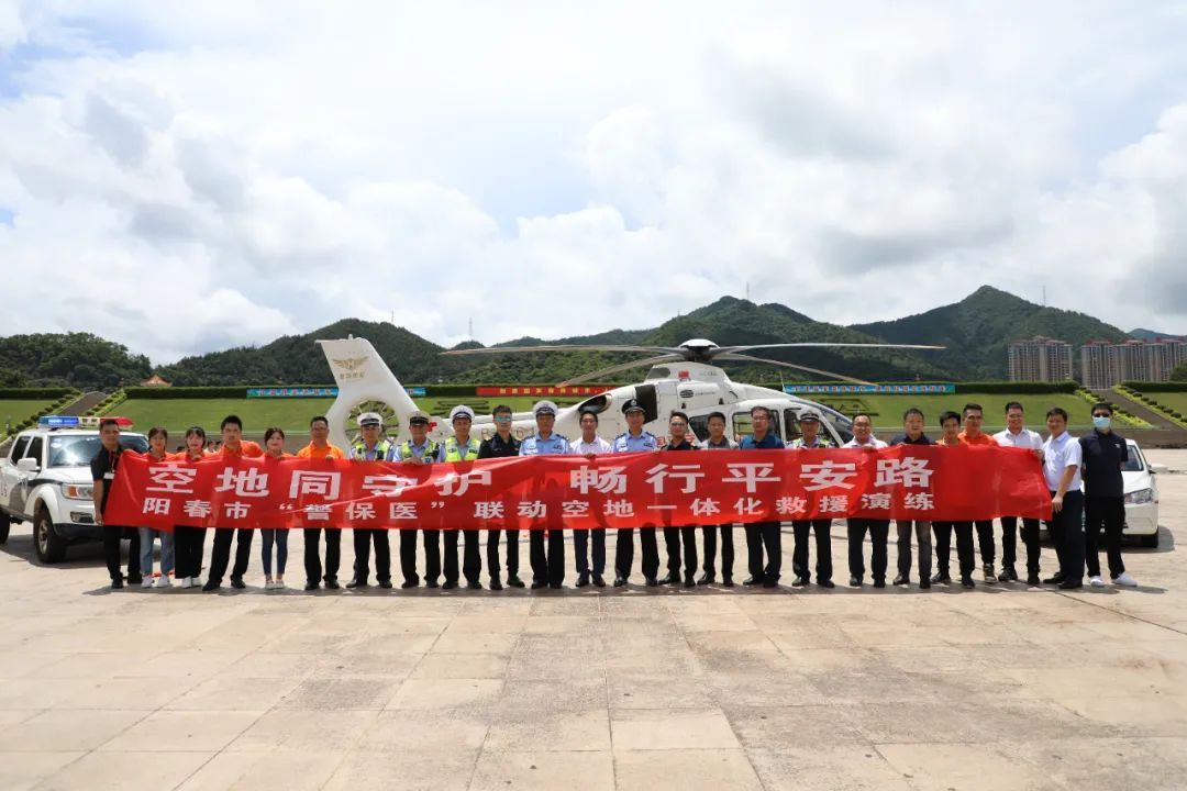 据了解,这是粤西首次开展“警保医联动”空地一体化直升机应急救援演练。2019年10月16日,阳春公安交警部门联合、阳春市人民医院、阳春市中国平安财产保险股份有限公司阳春支公司在阳春市人民医院举办了“警保医联动交通事故抢救理赔治疗一体化”试点启动仪式。这次“警保医联动”空地一体化救援演练,进一步深化了“警保医联动”合作模式,完善公路道路交通事故应急救援保障机制,确保交通事故伤者得到快速有效救治。