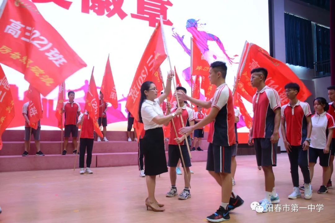 “不负韶华,造就奇迹”,谭元军校长慷慨激扬的寄语把典礼的气氛推向高潮。谭校长既回顾了2020年的高考,阳春一中取得了喜人的成绩,又激励同学们在未来的三百天里,相信老师的用心付出,相信自己的全力以赴。沙场点兵,擂鼓出征,阳春一中定会汇聚磅礴的力量,以一股勇往直前、势不可挡的劲头再续一中传奇!