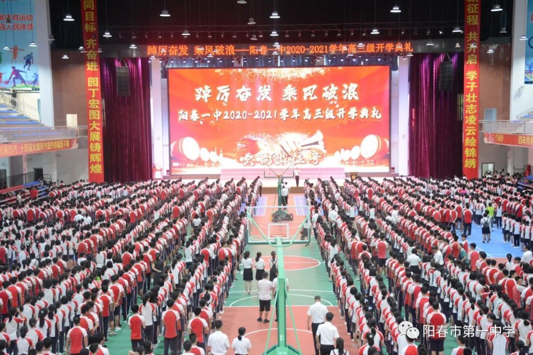 新的学期昭示新的开始,新的开始凝结新的希望。8月10日早上7点,阳春一中高三年级全体师生在振宏体育馆隆重举行以“踔厉奋发,乘风破浪”为主题的开学典礼。出席本次典礼的有学校党委书记、校长谭元军,党委副书记邹虹,高三级管理小组成员,部分家长代表以及高三级全体师生。