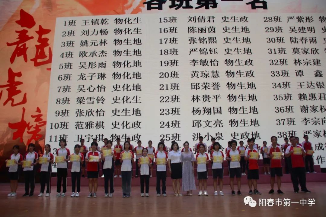 接着,王益才主任宣读表彰决定,表彰高二学年第二学期期末考试荣获各班第一名及动态卓越班的同学,谭元军校长、邹虹副书记为同学们颁奖。