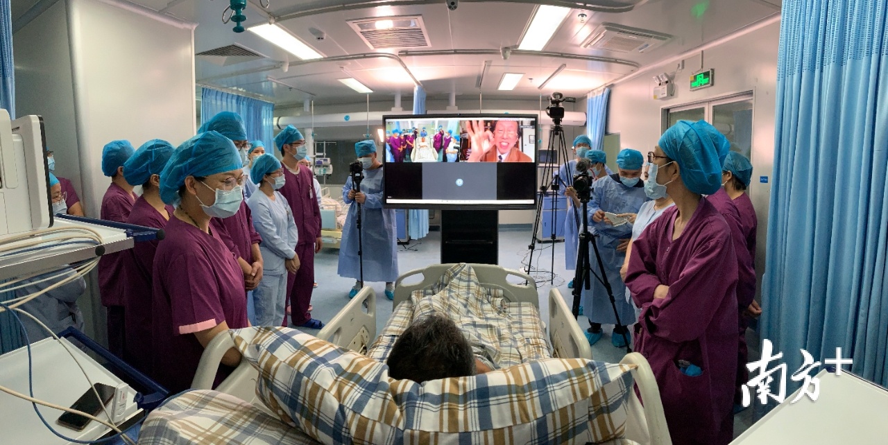 8月21日上午,林延龄教授通过远程视频与阳江市人民医院医生护士一起,对心血管重症监护区(CCU)患者进行首次“越洋查房”。