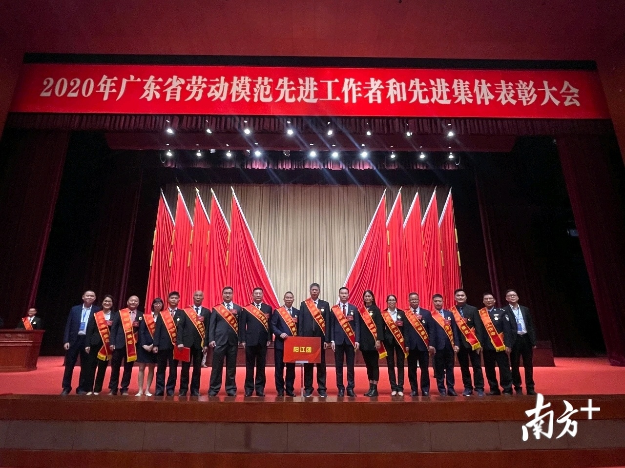 劳模表彰大会阳江地区获奖者合影,何升亮(左七)。