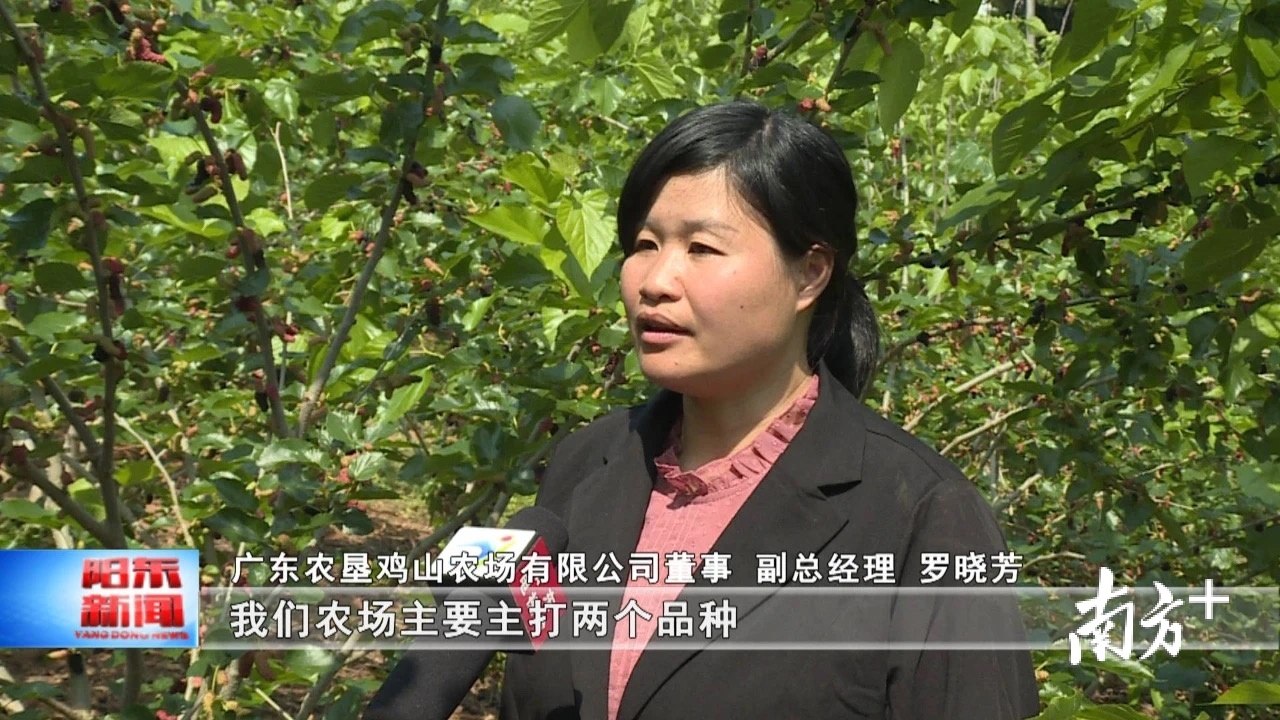 “我们农场主要主打两个品种,第一个是台湾超级长果桑葚,第二个是无籽大十桑葚,我们的无籽大十桑葚,它的亩产量达1400斤,那个台湾超级长果桑葚产量就会稍微低一点。”广东农垦鸡山农场有限公司董事、副总经理罗晓芳说。
