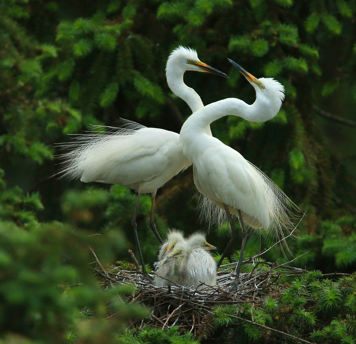 温馨的白鹭一家。