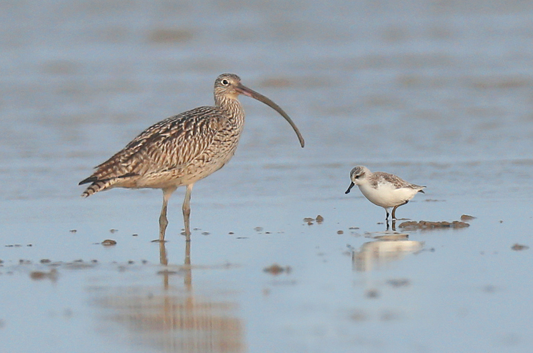 在鸟类家族中,勺嘴鹬个头迷你,成年鸟的体长也不过14-16厘米。这样的体形,在成片前来广东海岸滩涂觅食的旅鸟中,很容易被埋没。加上勺嘴鹬因繁殖和越冬栖息地的逐渐丧失,种群数量正经历极度衰退,因此,与它偶遇的机会可想而知。