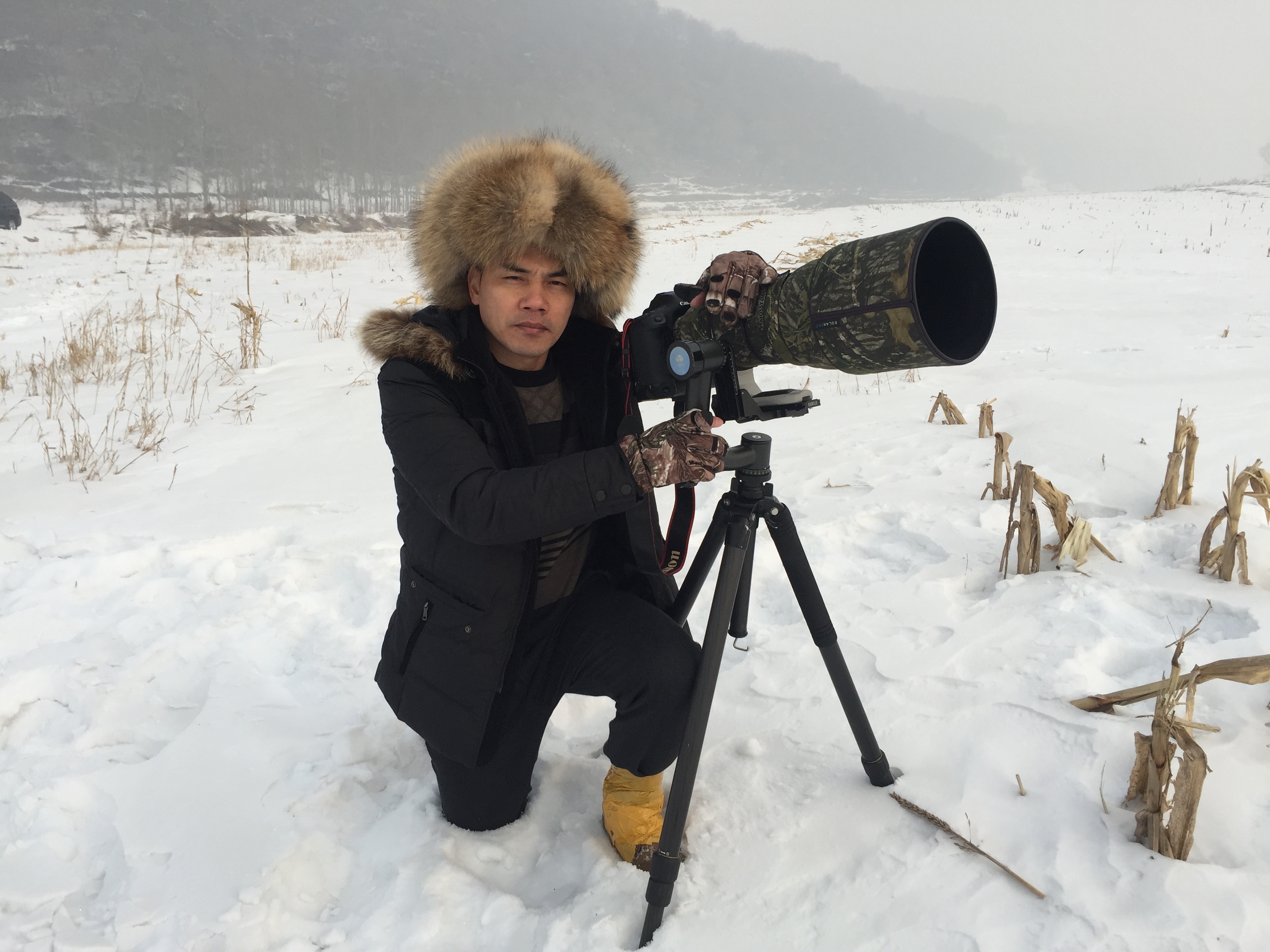 他曾经连续40天“潜伏”在金山植物公园,追踪翠鸟一家六口的日常生活;也曾来回9000公里冒着零下三十多度的严寒在内蒙古根河等待雪鸮;更为拍摄勺嘴鹬,车钥匙和手机掉进海里,两次车陷泥沙,眼见涨潮而心惊胆战……