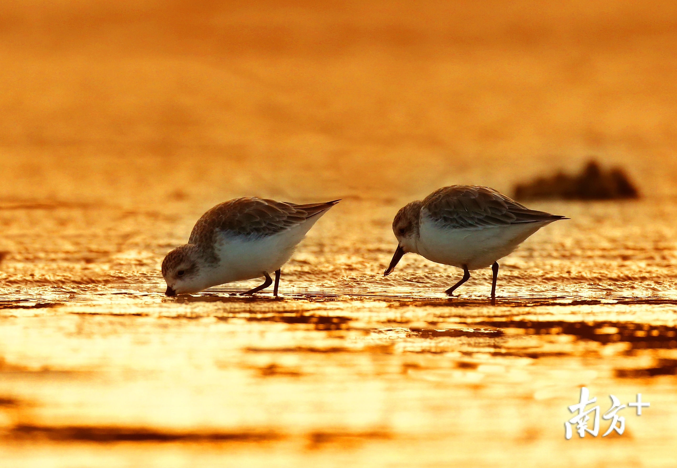 勺嘴鹬仿佛置身黄金海岸。