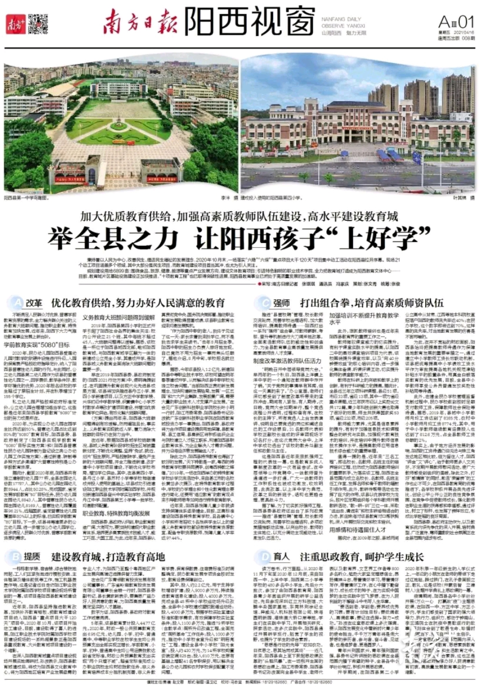 不断满足人民群众对优质、普惠学前教育资源的需求,全力解决群众关注的义务教育大班额问题,推动职业教育、特殊教育加快发展,近年来,阳西下大力气推动教育事业发展上新台阶。